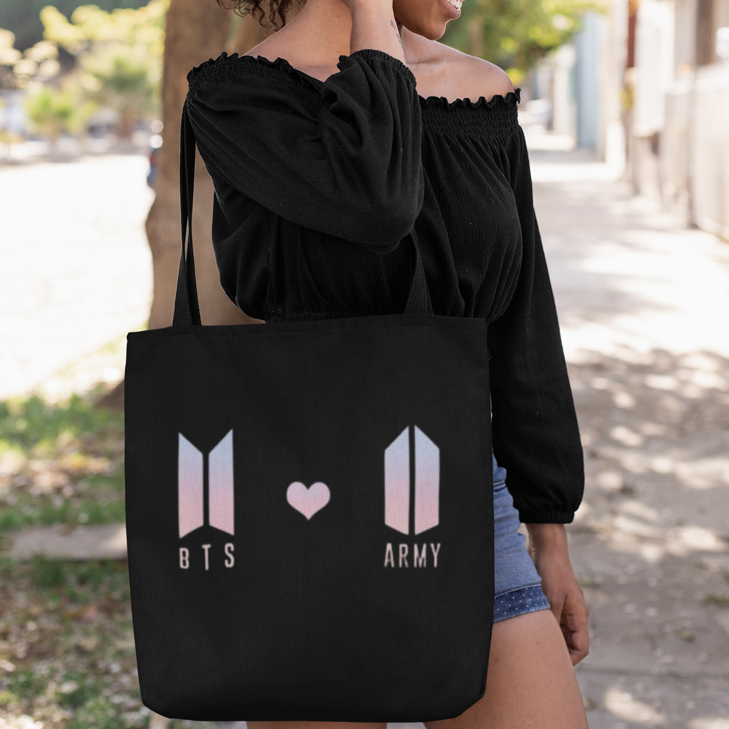 This BTS×ARMY Logo Themed Black Zipper Tote bag is the perfect accessory for any fan. Made with sturdy materials, it features the iconic logo of BTS and ARMY. The zipper closure keeps your belongings secure while on the go. Show off your love for the group with this stylish and functional tote bag.