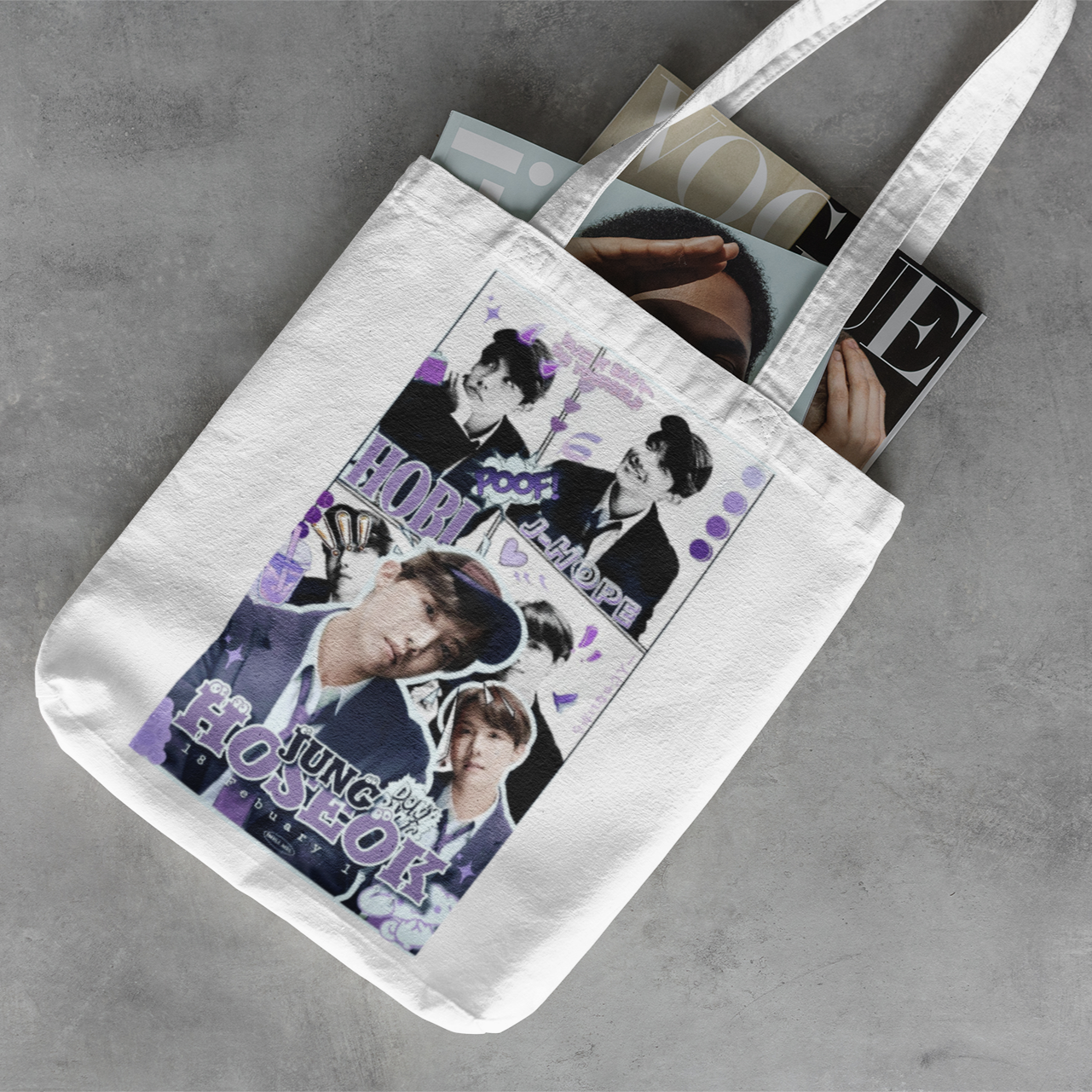 Introducing the BTS J-Hope Themed White Zipper Tote bag, perfect for any fan! Made with durable materials and featuring a secure zipper, this tote bag is ideal for carrying your belongings on the go. With a sleek design and high-quality construction, this tote bag combines style and functionality.