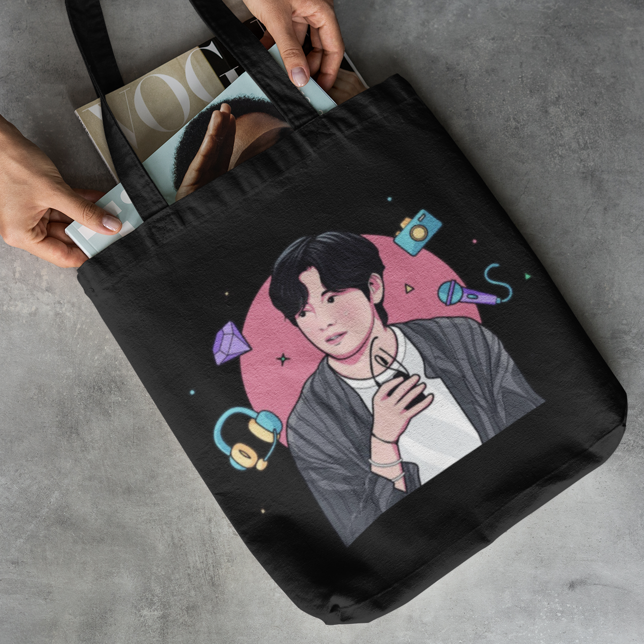 Carry your love for BTS everywhere with this themed black zipper tote bag. Made with durable material, it's perfect for daily use and can hold all your essentials. Show your support for your favorite band while looking stylish. Perfect for yourself or as a gift for any ARMY.